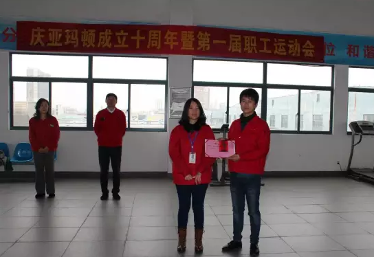 12月14日,在公司工會及人力資源部等部門的大力支持下,由辦公室組織籌辦的亞瑪頓首屆職工運功會在員工活動中心閉幕。公司董事長林金錫、財務總監陳少輝、工會主席夏小清、人事部經理戴玉琴等領導出席閉幕儀式,并為獲獎員工進行了頒獎。