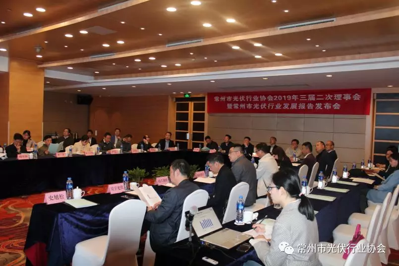 4月30日上午,常州市光伏行業協會“2019年三屆二次理事會暨常州光伏行業發展報告發布會”在常州錦江國際大酒店順利召開。會議的主題是探討光伏行業走勢,重點推出《常州市光伏行業發展報告2019》。常州市工商聯袁學軍副主席,市發改委、工信局、工商聯和市三會相關處室領導到會。23家會員單位的近40位代表參會。協會史旭松秘書長主持會議。