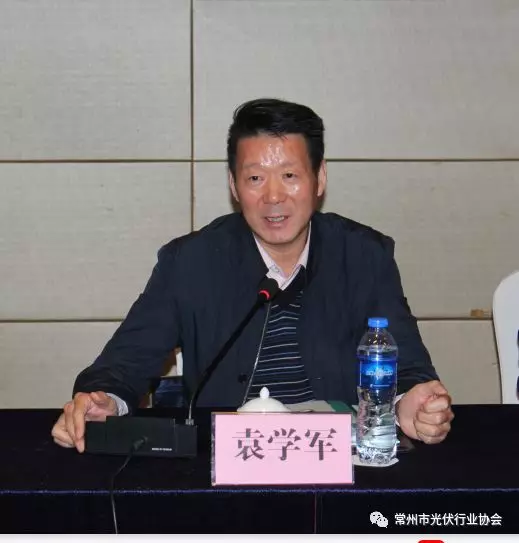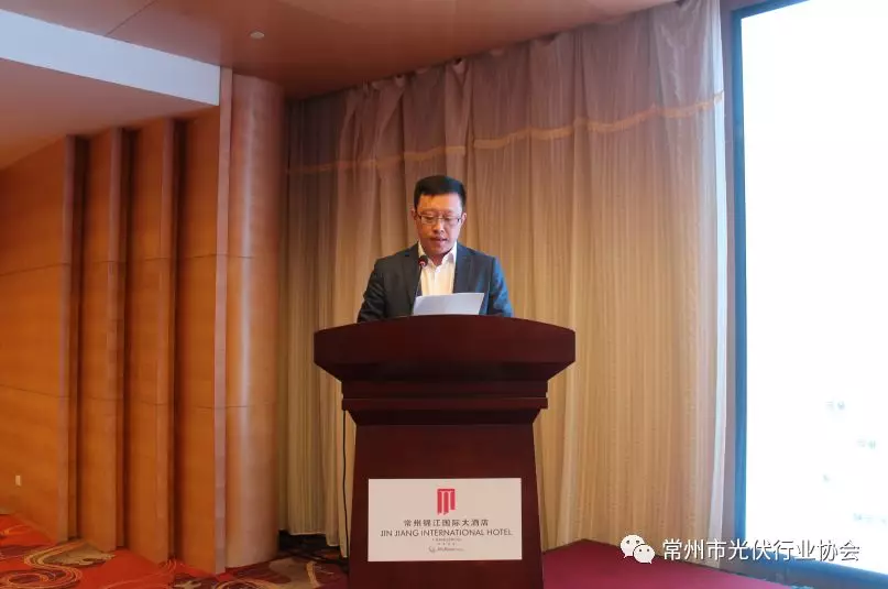 常州市工商聯袁學軍副主席發表重要講話。袁主席首先對常州光伏行業協會表示贊賞。他希望協會要成為大家學習提升的平臺,同時要辦成快樂健康的協會,給大家緩解壓力、釋放壓力;協會還需要給大家提供交流分享、在商言商的活動,向市場、社會提供優質服務。