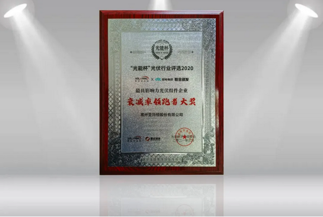 3月3日,光能杯跨年分享會暨第十四屆光伏經銷商論壇在蘇州如期舉行。常州亞瑪頓股份有限公司受邀出席并榮獲最具影響力光伏組件企業“衰減率領跑者”,“最具影響力輔材企業”兩項大獎。